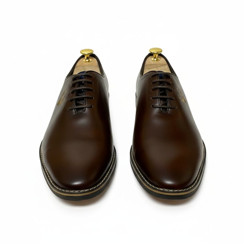 Step into timeless elegance with JonasParamount’s Premium Formal Shoes for Men. Crafted from high-quality faux leather with a durable handmade TPR sole, these classic brown lace-up Oxfords deliver unmatched comfort, durability, and style for every formal occasion.
